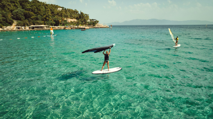Gün boyunca rüzgâr sörfü, yelken, fitness ve deniz aktiviteleri ile hareketli bir program sunulurken; günün ilerleyen saatlerinde tempo yerini daha sakin bir ritme bırakıyor.