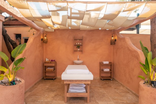 Otel farklı kültür ve felsefeleri sentezleyerek de bir bütünlük oluşturuyor. Örneğin otelin girişindeki antik Roma duvarları plaja doğru etnik kültürünü yansıtan ahşap heykellere dönüşüyor.
