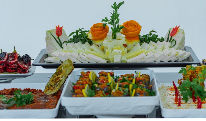 Güne Ege’ye yakışır taptaze bir başlangıç sunan kahvaltı büfesinde; su böreği, zeytin ve peynir çeşitleri, taze pişen yumurtalar ve sıcak omletler yer alıyor. Show alanında misafirlerin isteğine göre anında hazırlanan omletler de kahvaltı keyfini taçlandırıyor.