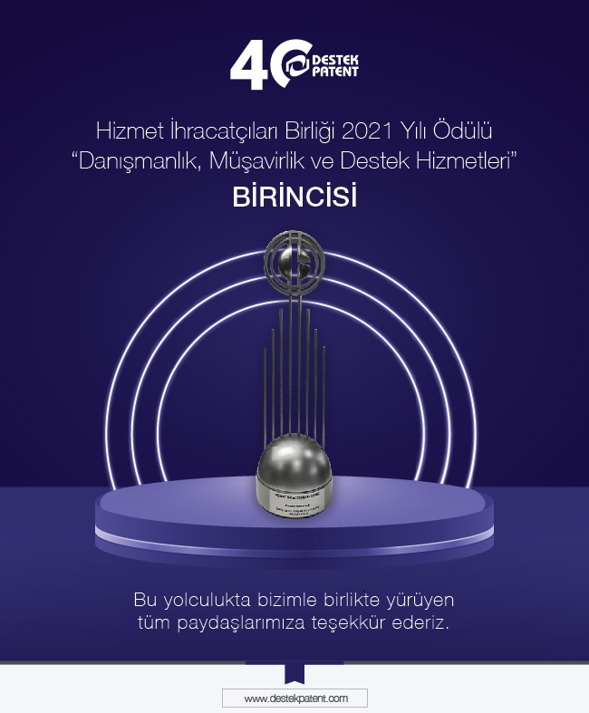 Hizmet İhracatçıları Birliği, “2021 Yılı Hizmet İhracatı Şampiyonları”nı açıkladı. Sınai haklar alanında 40 yıldır hizmet veren Destek Patent, son üç yıldır olduğu gibi yeniden birinci seçildi.