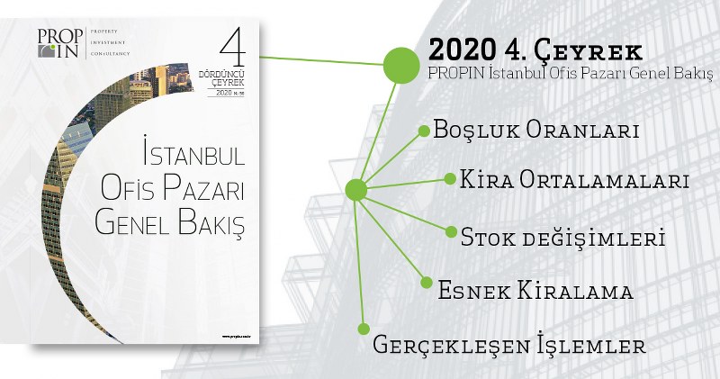Propin Gayrimenkul ve Danışmanlık Hizmetleri A.Ş tarafından 15 yıldır her üç ayda bir hazırlanan “İstanbul Ofis Pazarı Genel Bakış” raporunun 56. Sayısı 2 Şubat 2021 tarihinde yayınlandı. Rapor, 2020 dördüncü çeyrek dönemle birlikte tüm yıla dair çarpıcı sonuçlar ortaya koydu.