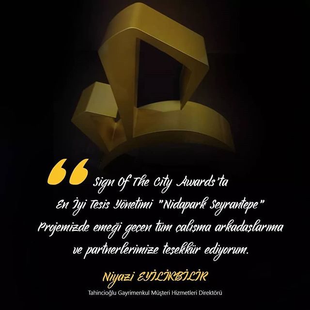 Yönetim süreçlerinde Apsiyon’u tercih eden Tahincioğlu Nidapark Seyrantepe Projesi, "En İyi Gayrimenkul Tesis Yönetimi" dalında Sign of the City Awards 2018 Ödülü’nü alarak, bu alanda ödül kazanan ilk proje olmayı başardı.