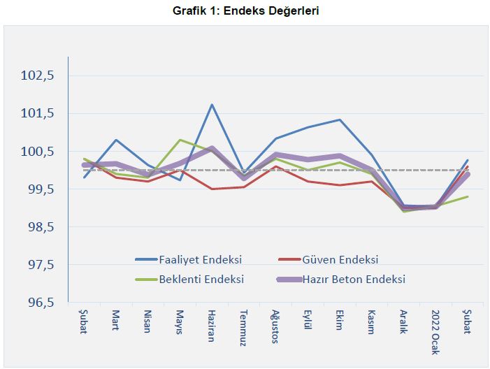 Türkiye Hazır Beton Birliği (THBB), her ay merakla beklenen inşaat ve bununla bağlantılı imalat ve hizmet sektörlerindeki mevcut durum ile beklenen gelişmeleri gösteren “Hazır Beton Endeksi” 2022 Şubat Ayı Raporu’nu açıkladı.