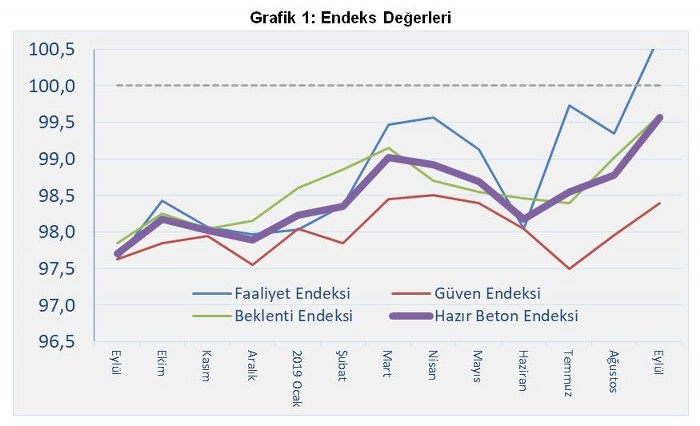 Hazır Beton Endeksi 2019 Eylül Ayı Raporu’na göre, bütün endeksler önceki yılın aynı dönemine göre artış sergiledi. Geçen yılın aynı ayına kıyasla geride bıraktığımız eylül ayında sektörde bir canlanma söz konusudur.