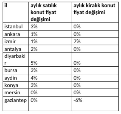 İzmir’de bir önceki aya oranla kira fiyatları %7 oranında artış gösterirken Gaziantep’de ise kira fiyatlarında %6 oranında gerileme gözlendi.