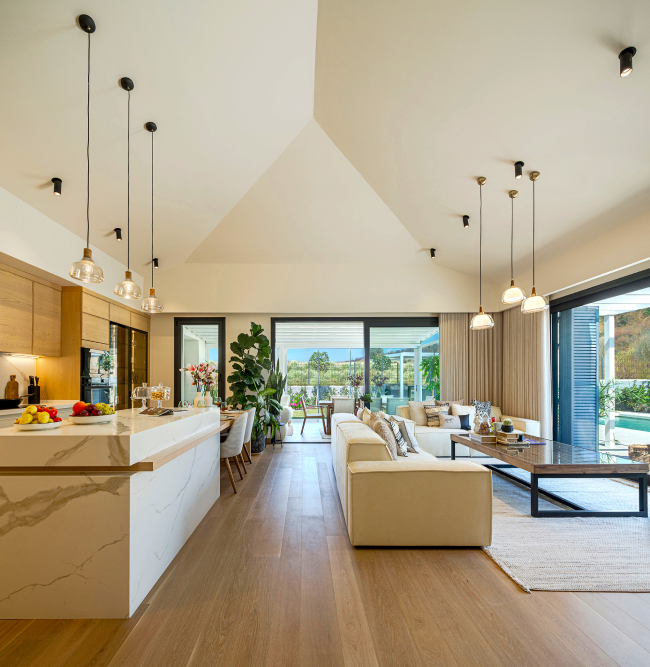 276 adet bahçeli evimiz; doğal yapı bozulmadan araziye uyumlu inşa ediliyor. Ayrıca binaların çatısı, güneş enerjisi panellerinin yükünü taşıyacak biçimde yapıldı. Ev sahipleri bu panelleri işlevsel hale getirdiklerinde evin tüm elektrik ihtiyacını karşılayabiliyor. Kuraklık etkilerini hesaba katarak peyzaj düzenlemesinde suya çok ihtiyaç duymayan bitkiler kullandık.