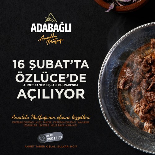 Adabağlı Anadolu Mutfağı 16 Şubat Cumartesi günü Özlüce’de saat 14.00’de açılıyor. Açılışa tüm Bursalılar davetli.
