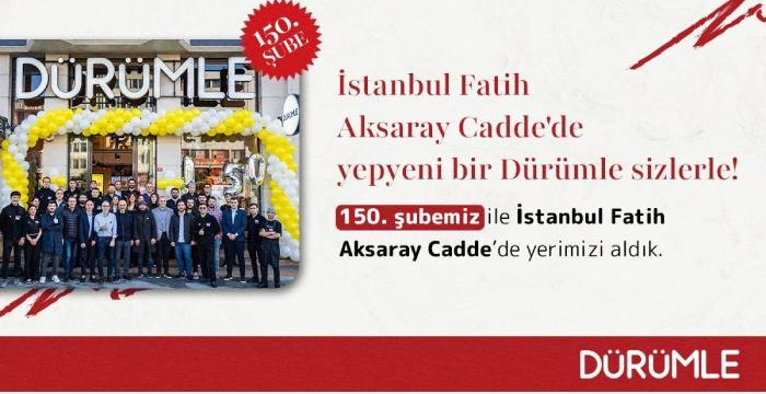 Dürümle, yenilikçi ve müşteri odaklı yaklaşımıyla sektördeki iddiasını sürdürüyor. 150. şube açılışıyla yeni bir döneme giren marka, sadece Türkiye genelinde değil, uluslararası alanda da büyüme hedeflerine ulaşmak için çalışmalarına hızla devam ediyor.