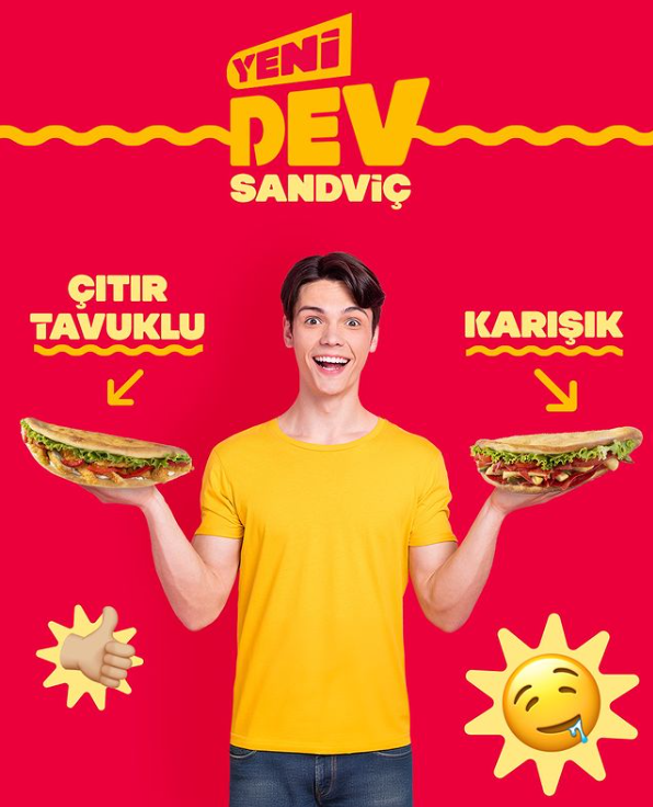Tüm damak zevklerine hitap eden bu dev sandviçler, pratik ve hızlı bir seçenek olarak günün her saatinde keyifle tüketilebilecek.