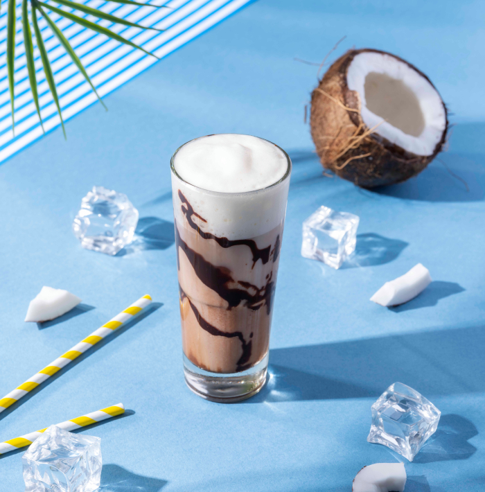 Yulaf sütünün kremamsı tadı ve hindistan cevizinin tropikal aromasının uyumundan doğan vegan Oat Cocos Latte, çikolata, hindistan cevizi ile espressonun birlikteliğinin hem göze hem damağa hitap ettiği sütlü soğuk kahve Island Coco Wave,serin bir yaz rüzgarı gibi içinizi ferahlatacak.